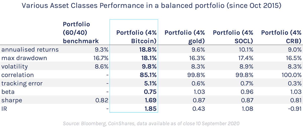 Bitcoin Performance vs Various Asset Classes in a Portfolio