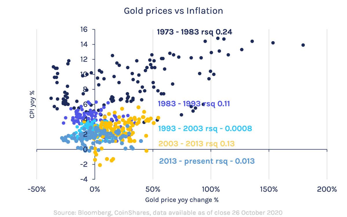 Gold has gone through ‘seasons’ in its relationship to core inflation. We expect bitcoin may do the same.